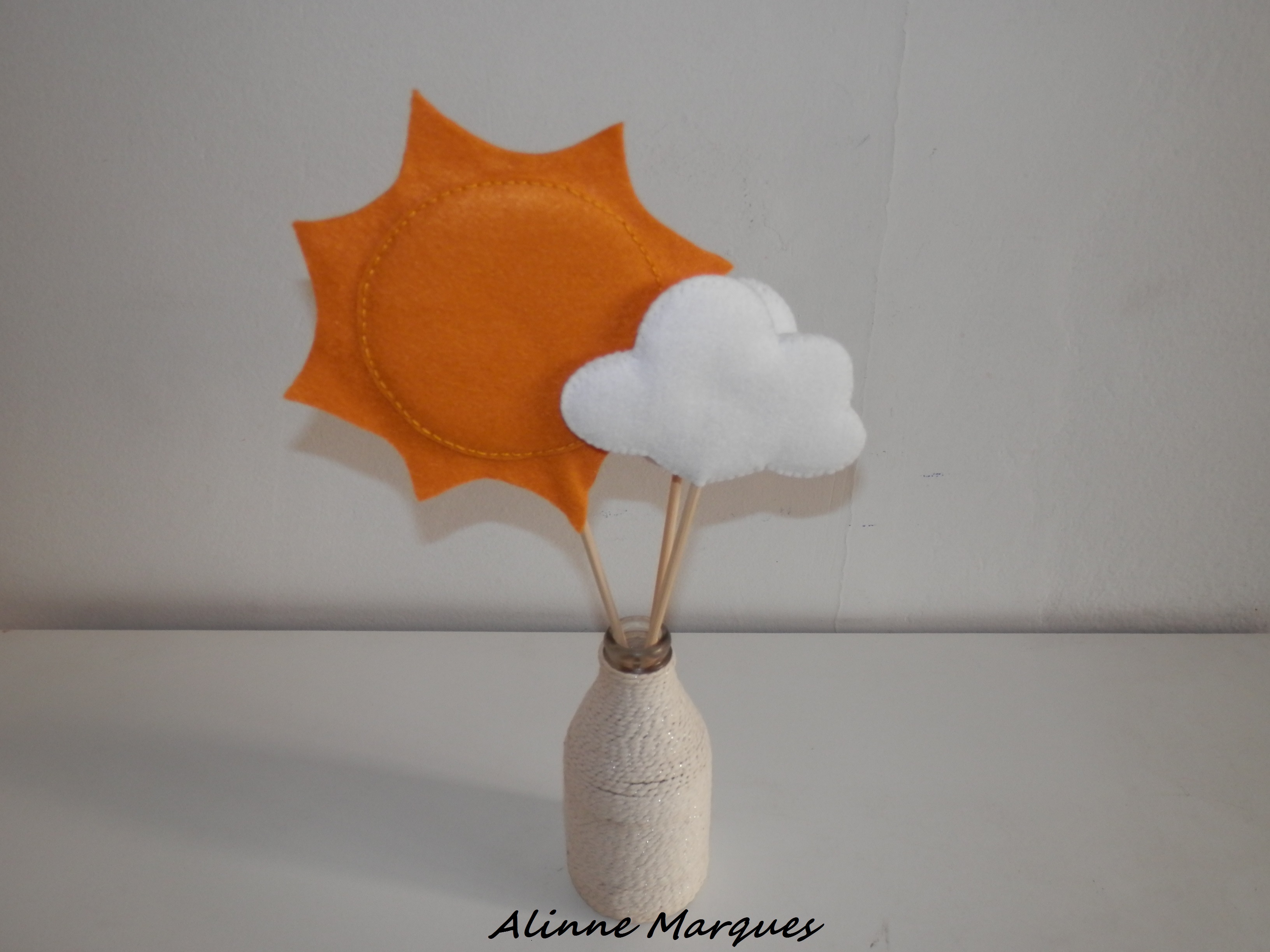 Duas partinhas de feltro, uma de eva no meio e atrás um pedacinho de imã.