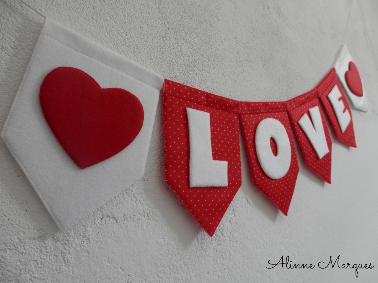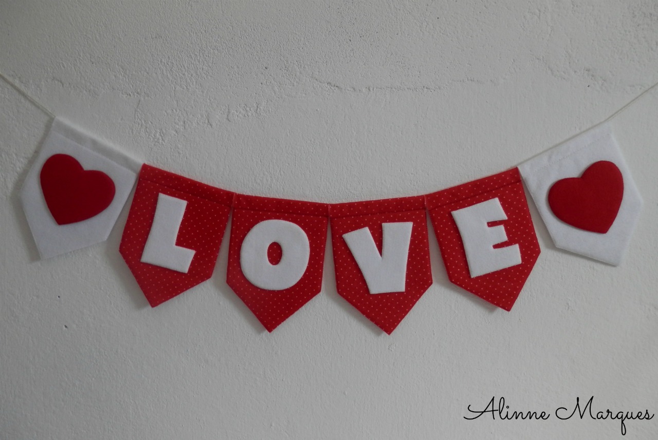 Fiz esse enfeitinho de parede para o meu quarto e resolvi compartilhar aproveitando que se aproxima o dia de São Valentim, valentine’s day e em vários países comemoram o dia dos namorados. Não precisa ser exatamente para data mas fica como inspiração para os apaixonados, por sua metade da laranja ou pela vida.