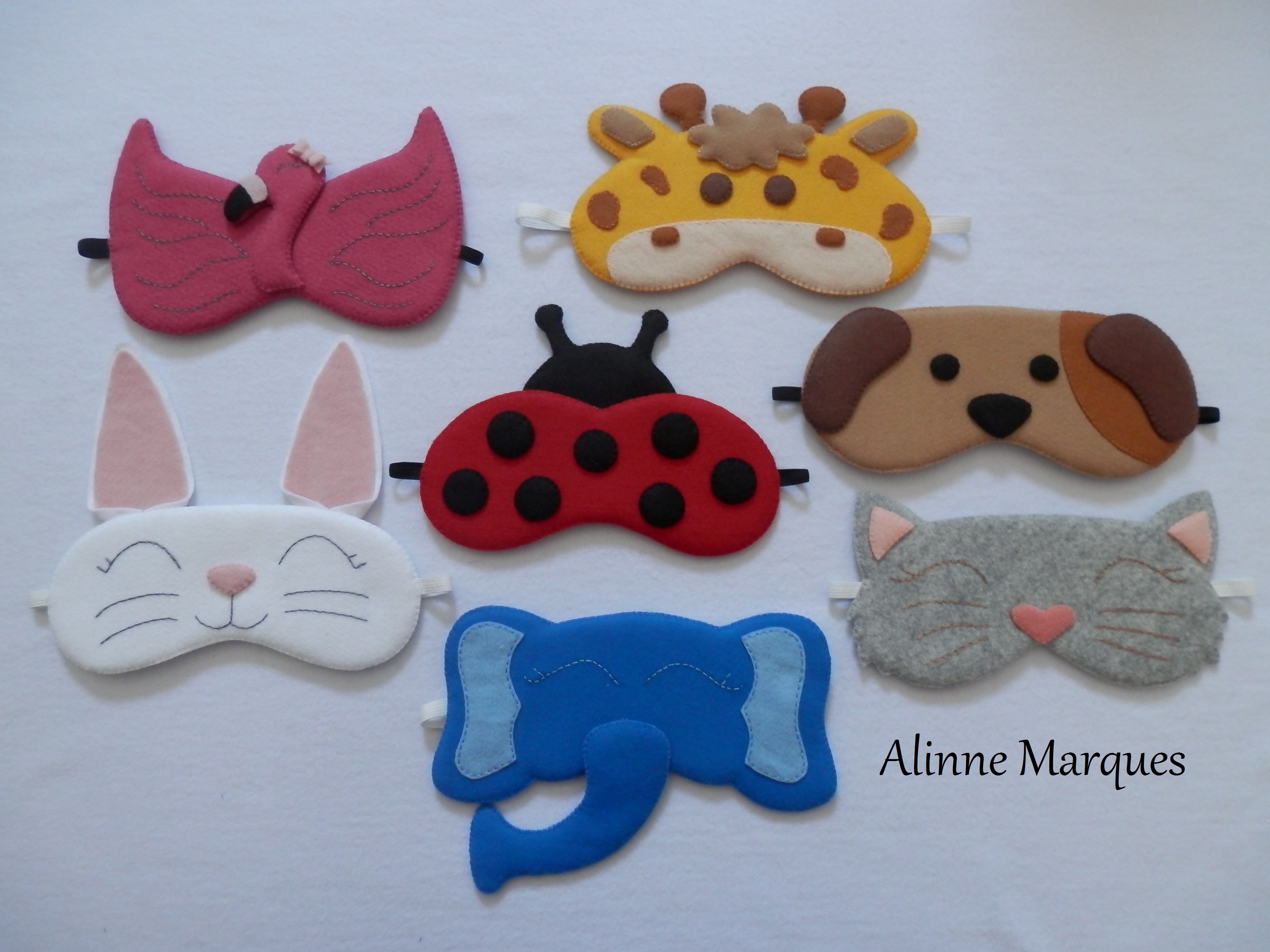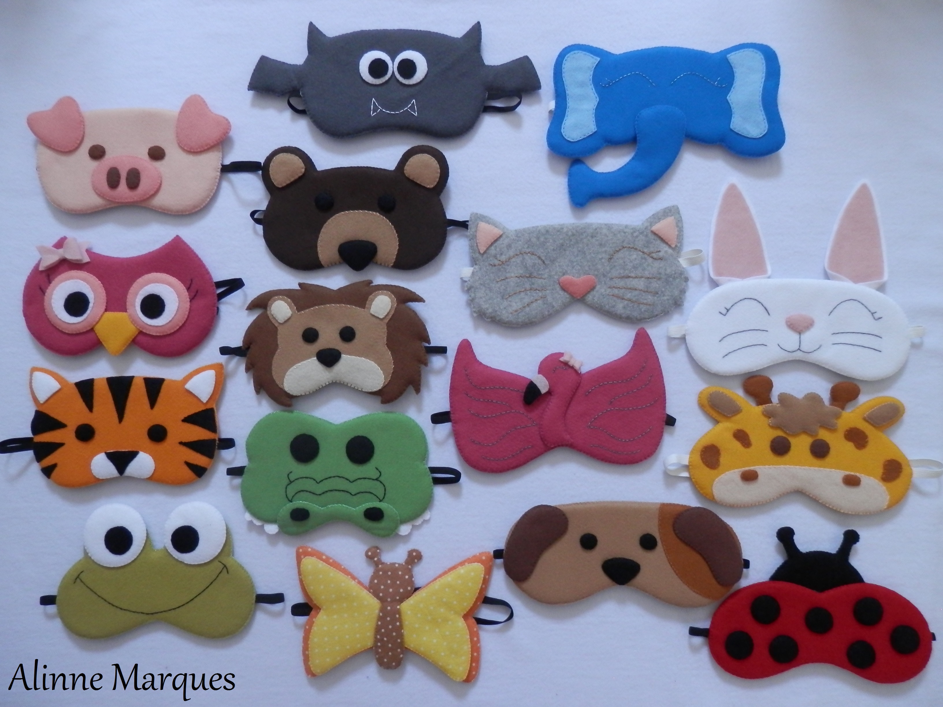 Eu fiz uma encomenda de máscaras de dormir com tema Arca de Noé para uma festinha do pijama do acampamento do grupinho das crianças da igreja. Eram 16 máscaras de animais variados. Não consegui trazer os moldes e passo a passo de todas por motivos óbvios (trabalho/ tempo/ não criei todos, alguns peguei os moldes da internet ou adaptei, a maioria eu criei mas…). Então resolvi criar um para compartilhar aqui e deixar minhas dicas e truques que com certeza só de olhar, quem quiser vai conseguir fazer.